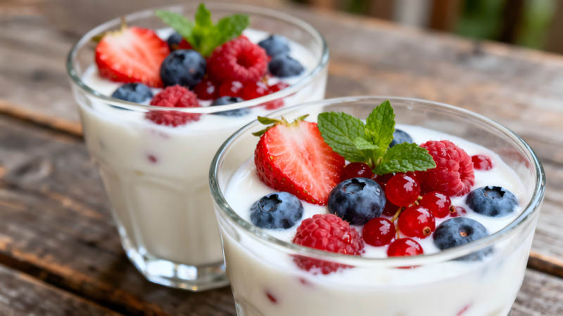 两杯酸奶搭配水果点缀