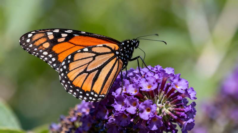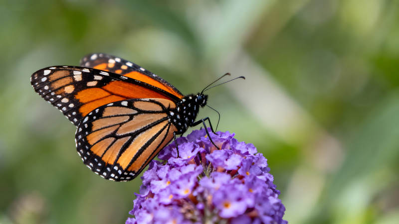 蝴蝶停在紫色花朵上