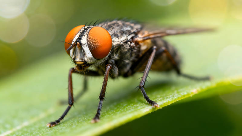苍蝇特写照片翠绿叶片