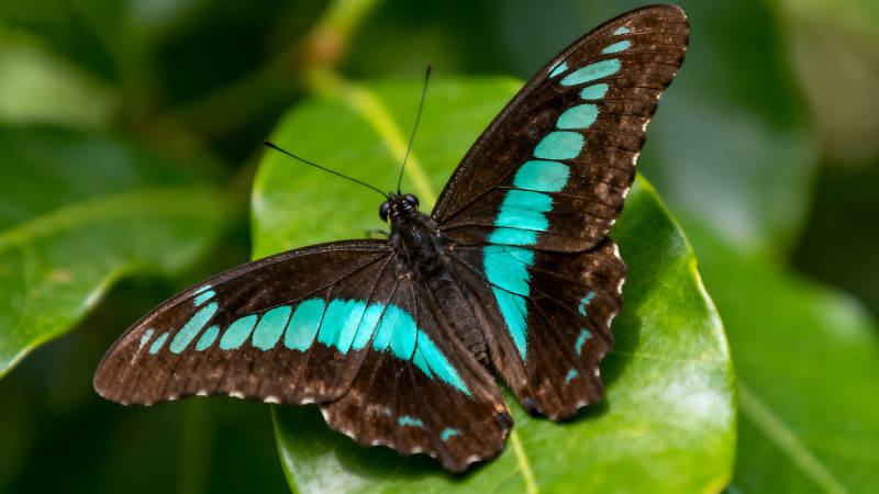 蝴蝶停在叶子上色彩鲜艳