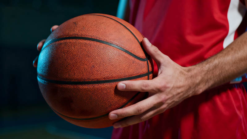 篮球运动员持球特写