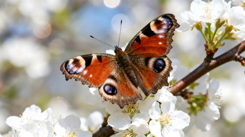 蝴蝶栖息白色花朵之上