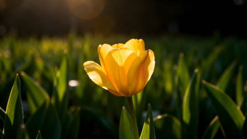阳光下盛开的黄色郁金香