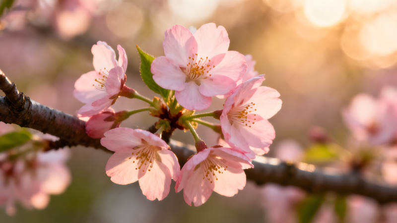 樱花盛开阳光洒落花瓣娇艳