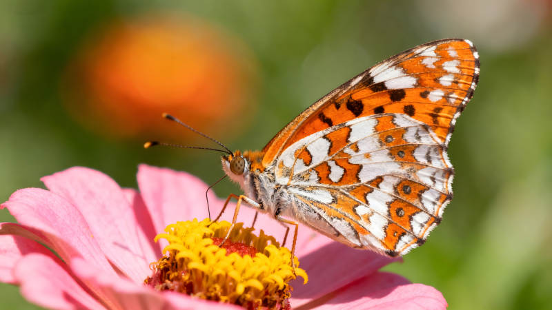 蝴蝶停在花朵上展现翅膀