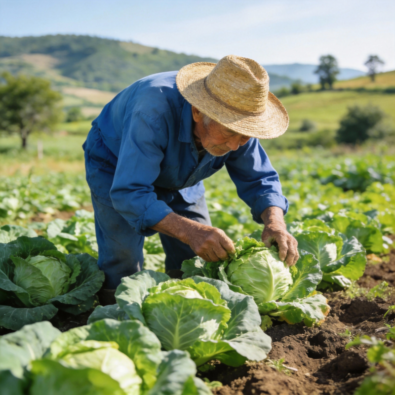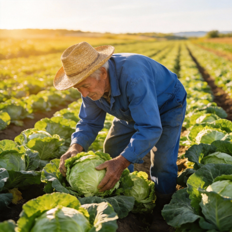 农夫采收卷心菜