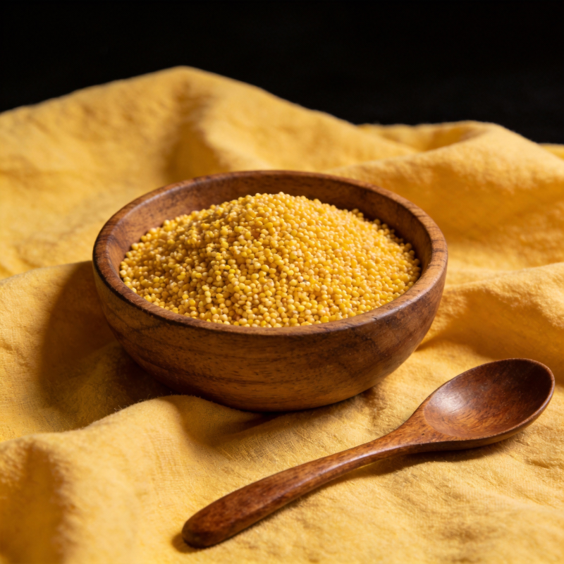 木碗盛小米 勺相伴