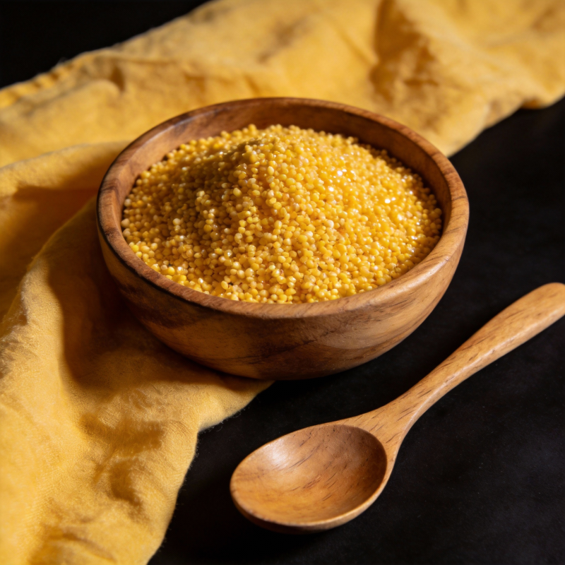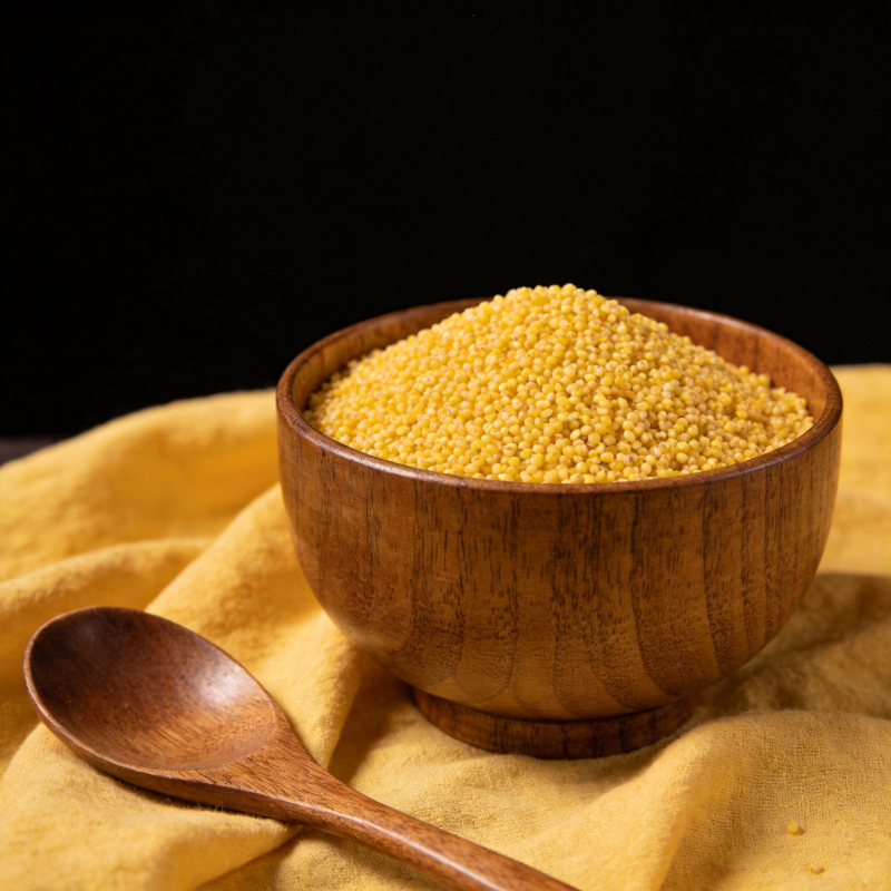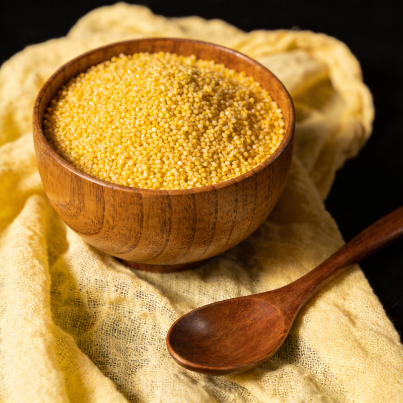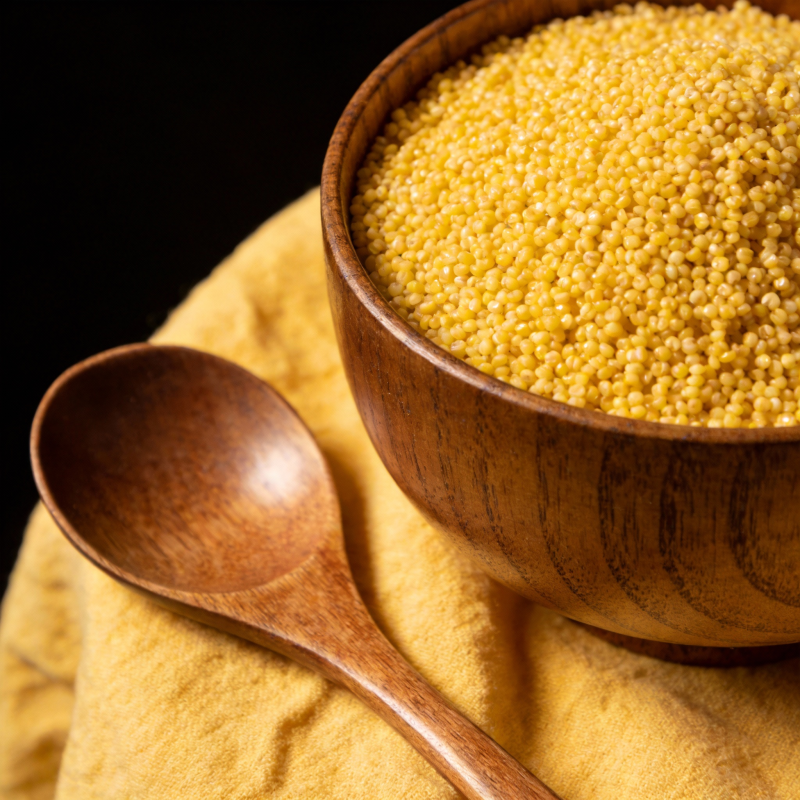 小米盛于木碗中
