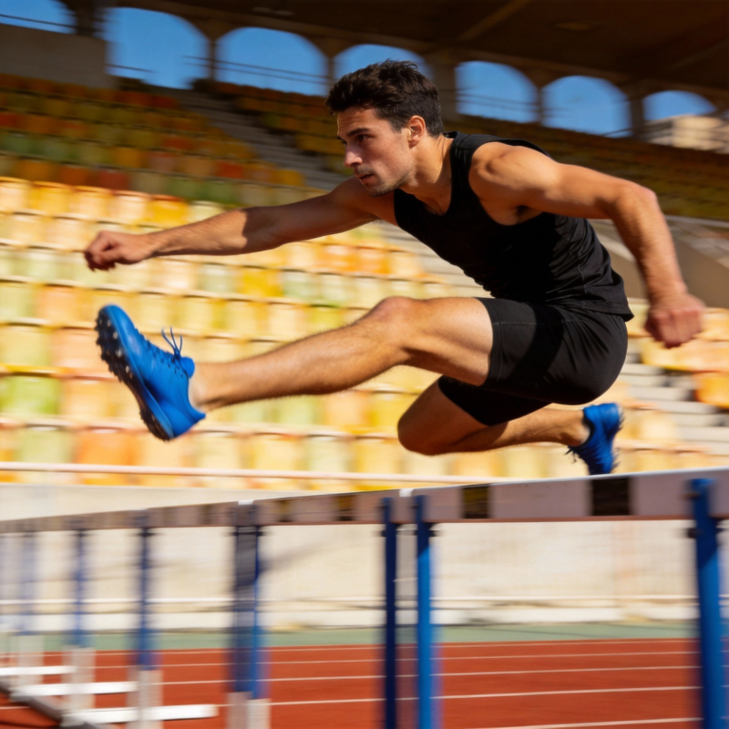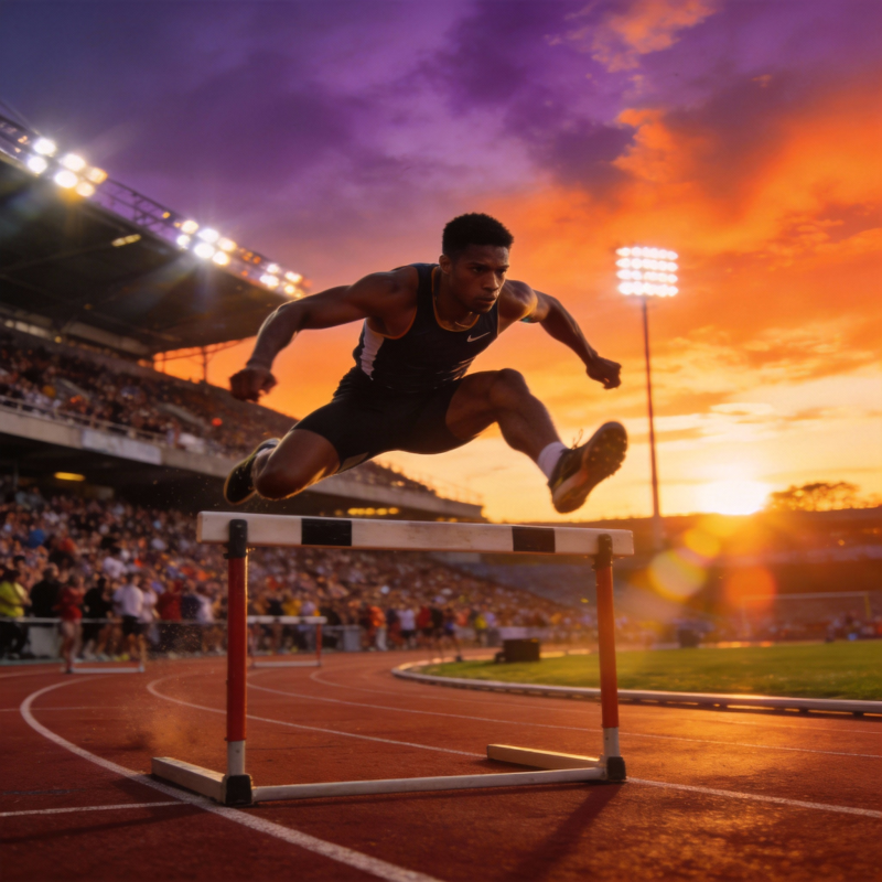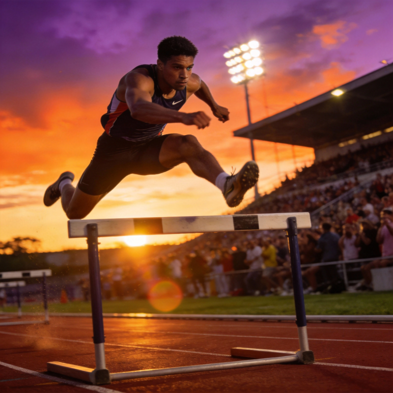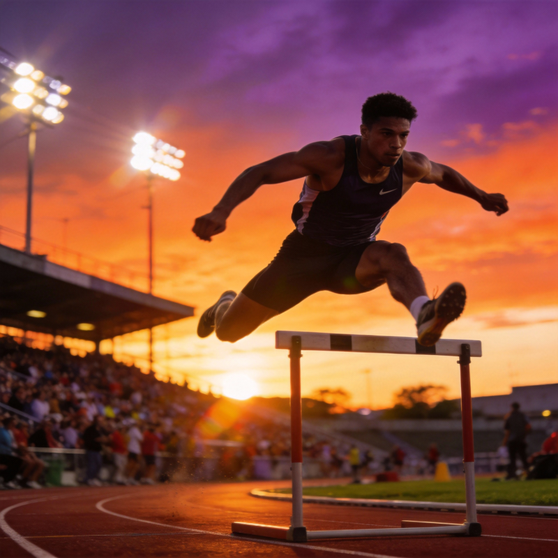 跨栏运动员飞跃瞬间