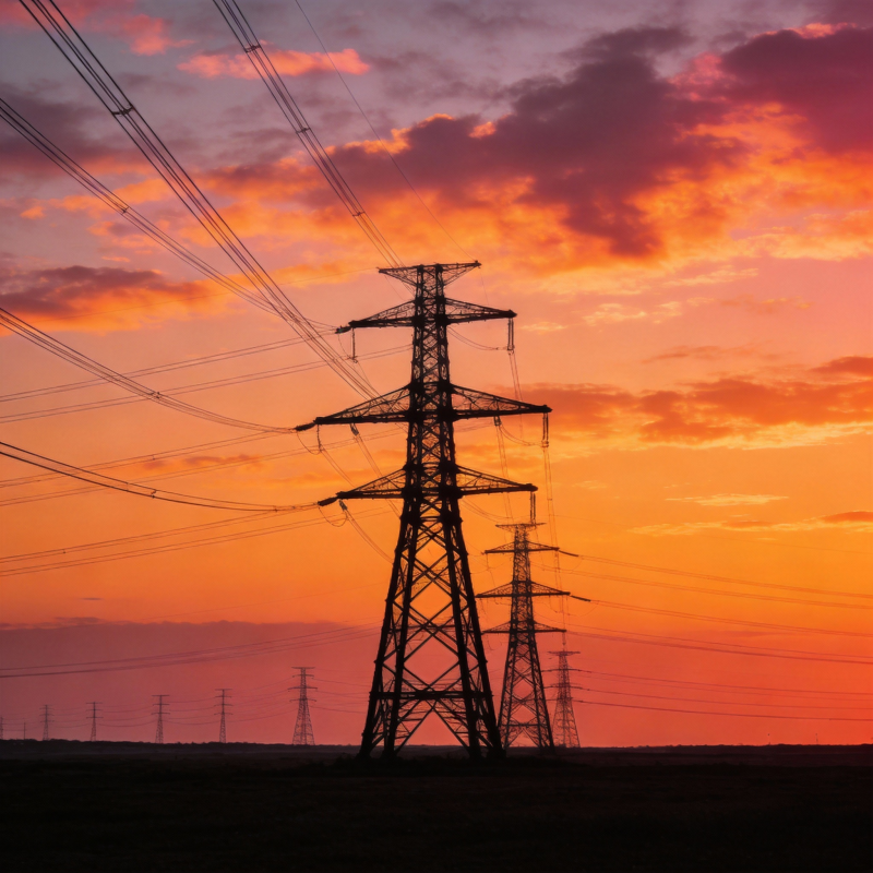 夕阳下的电力塔