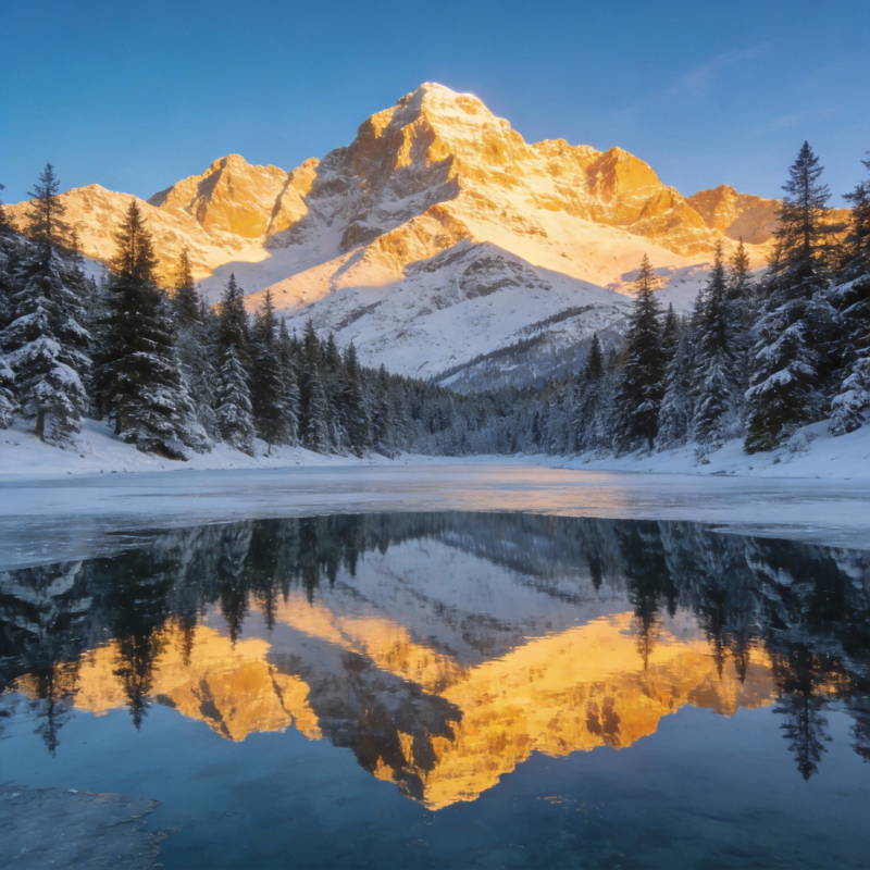 雪山映湖 冬日仙境