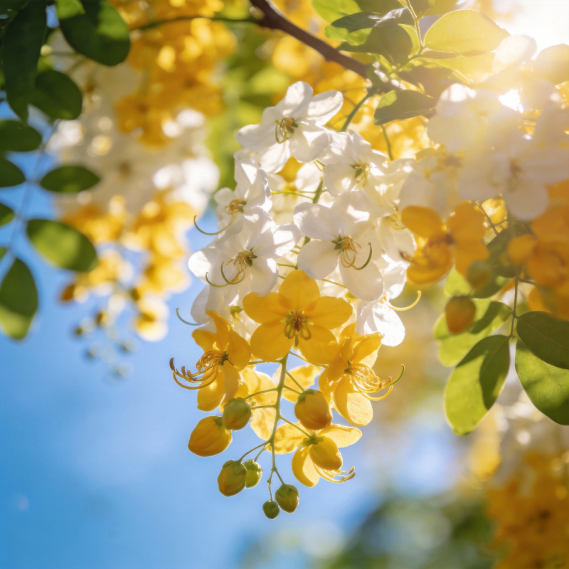 黄白花簇迎阳光