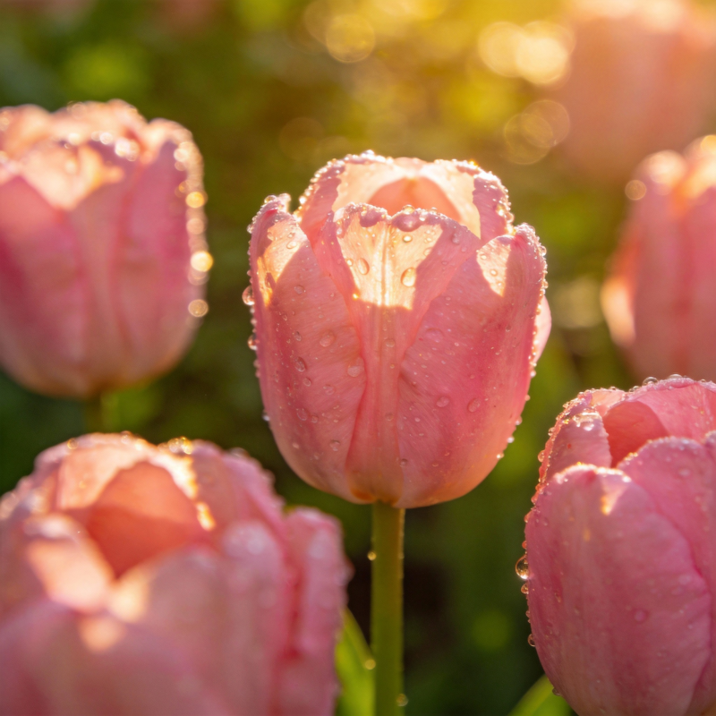 晨露粉郁金香