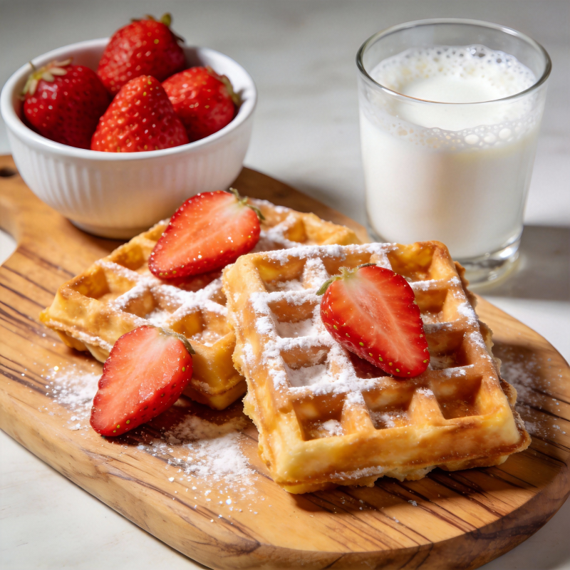 草莓华夫饼配牛奶