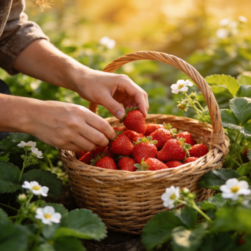 采摘新鲜草莓