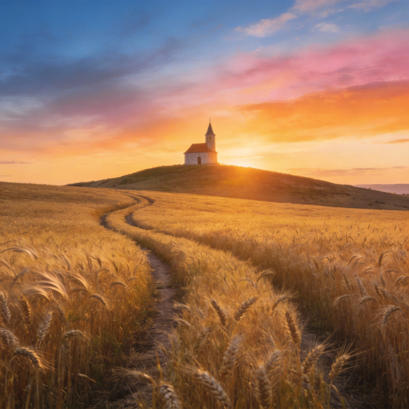 麦田小径夕阳教堂