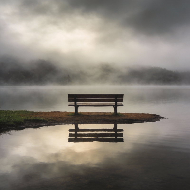 湖畔孤椅静谧景