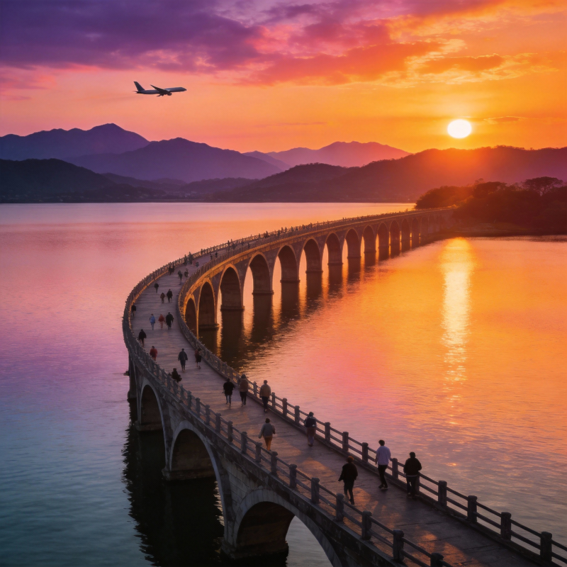 日落桥影人行