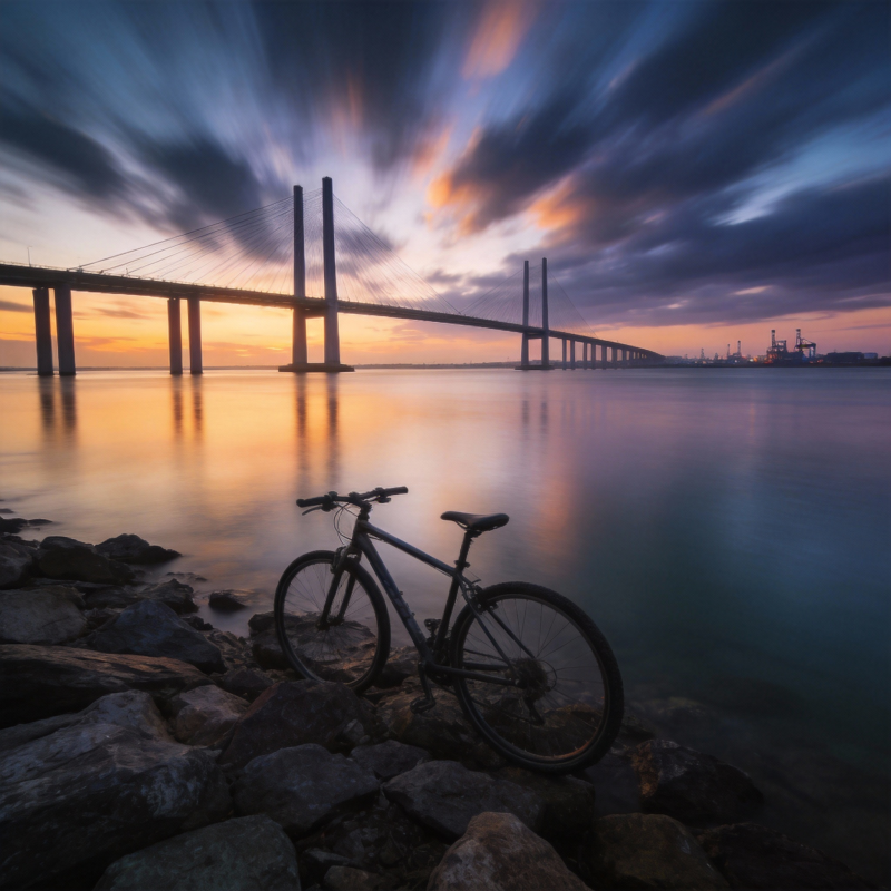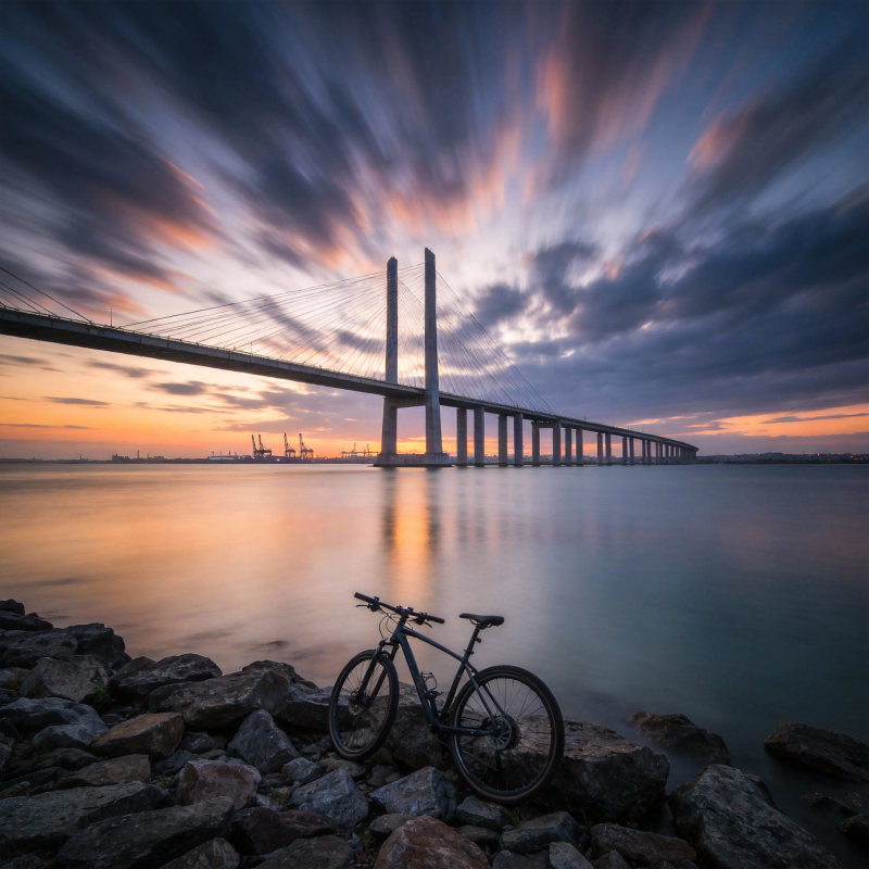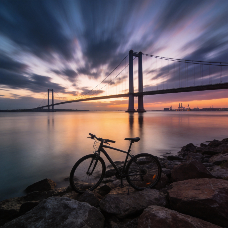 桥畔单车暮色美