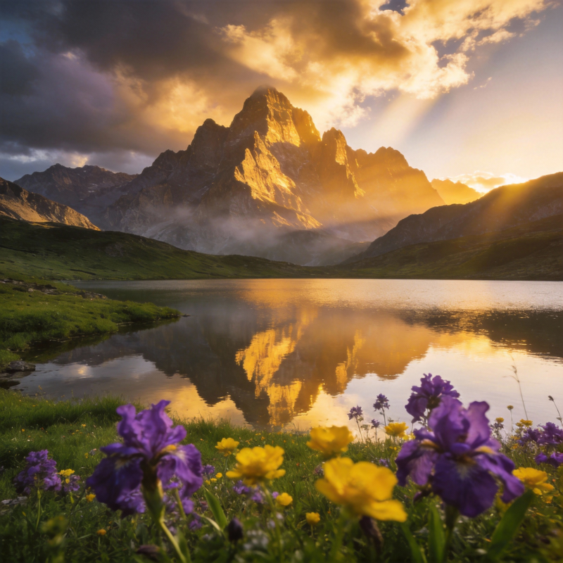 山湖花影晨曦
