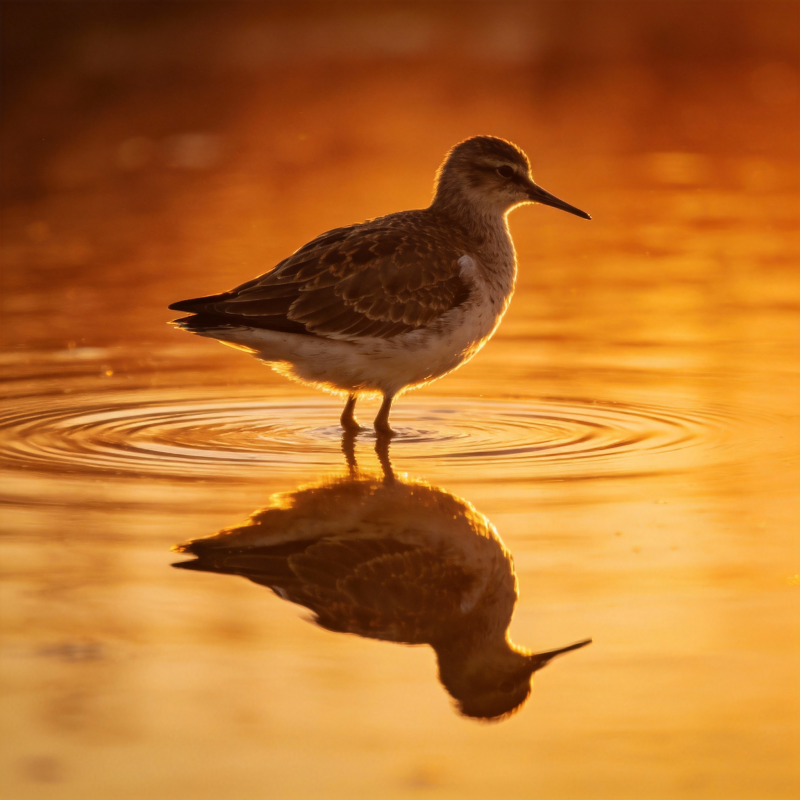 金光水鸟静立