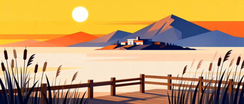 湖畔日落风光