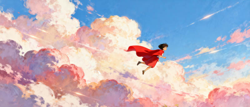 红衣少女飞越云海