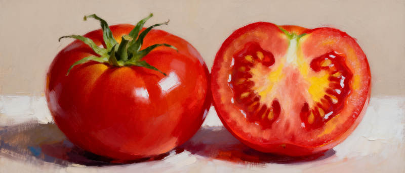 鲜红番茄静物画