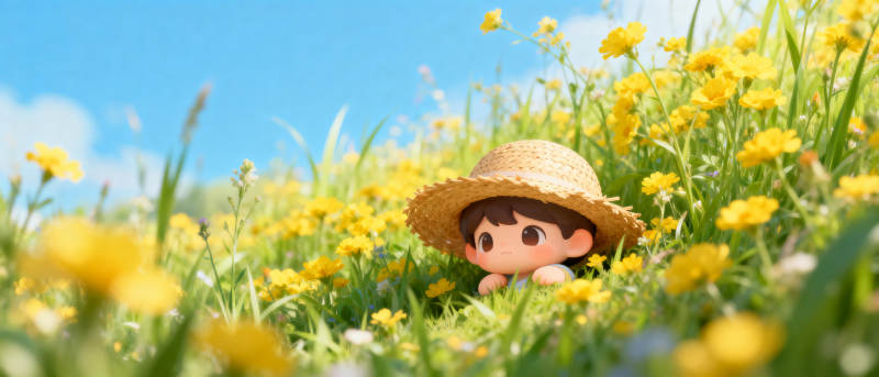 花丛中的小人偶