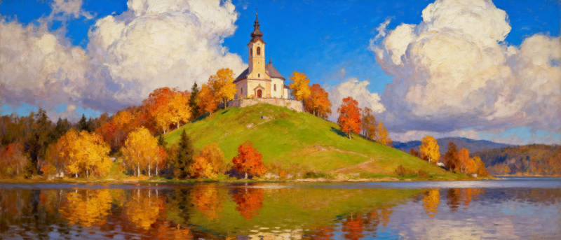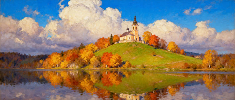 秋湖映教堂