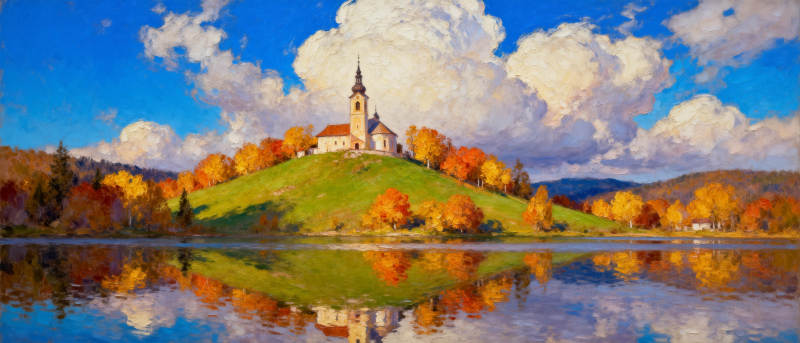 秋湖教堂倒影
