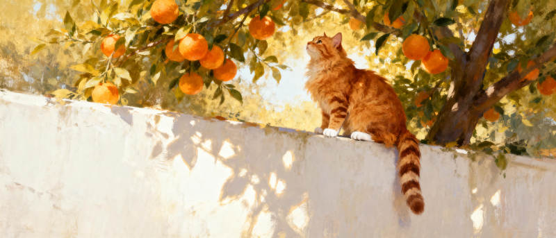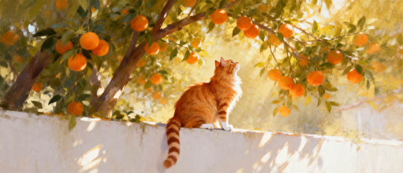 橙猫树影间