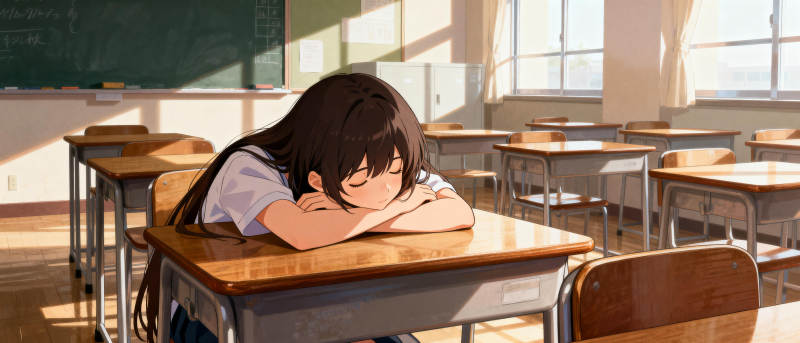 教室午睡的女孩