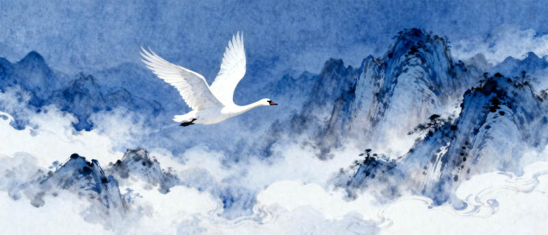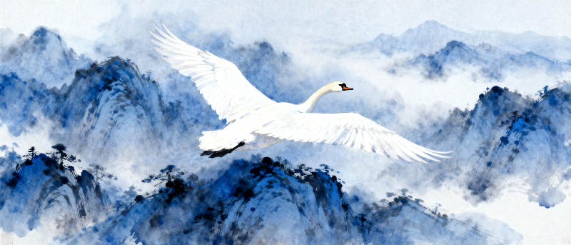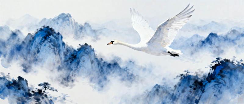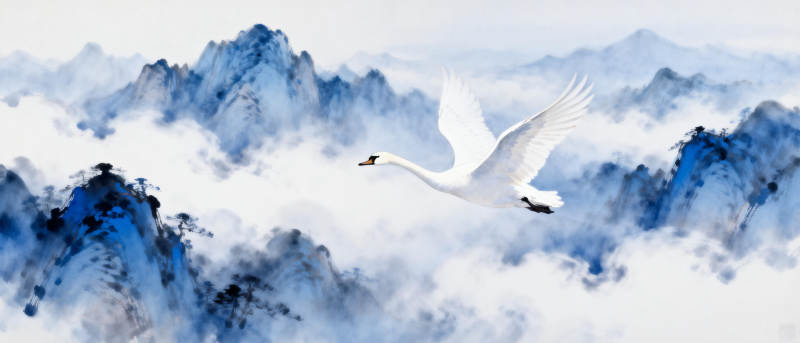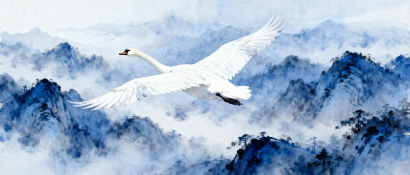 天鹅飞越云山