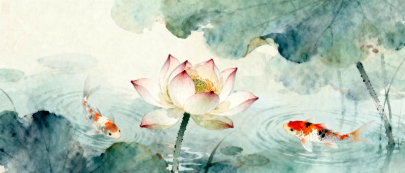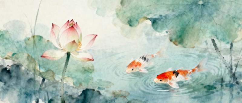 荷塘锦鲤戏水