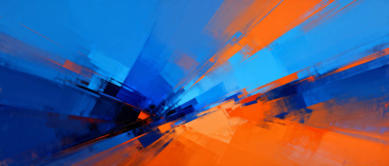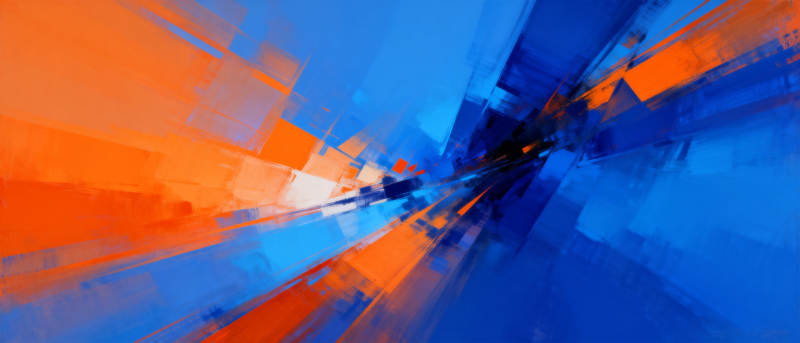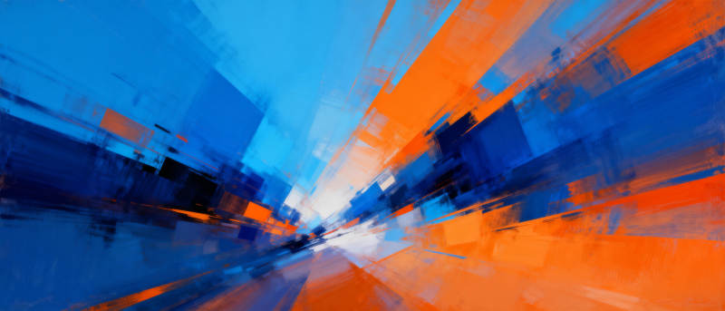 蓝橙交织的抽象画