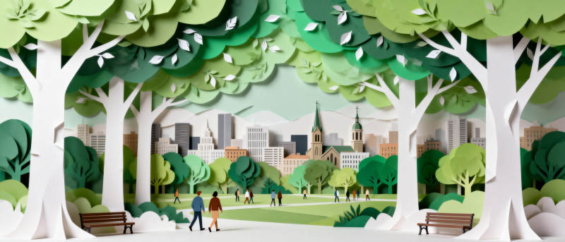 城市公园剪纸风