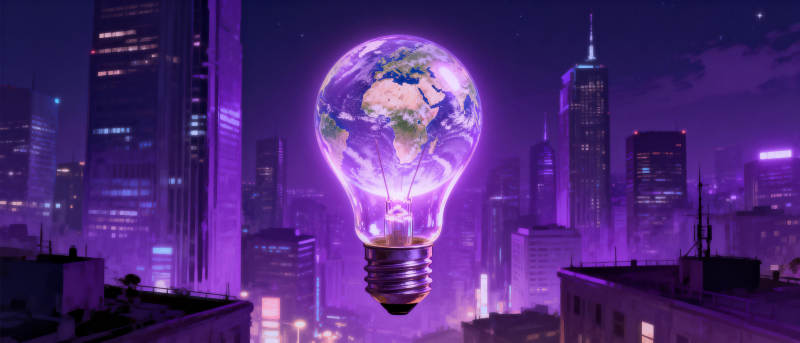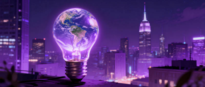 地球灯泡照耀城市