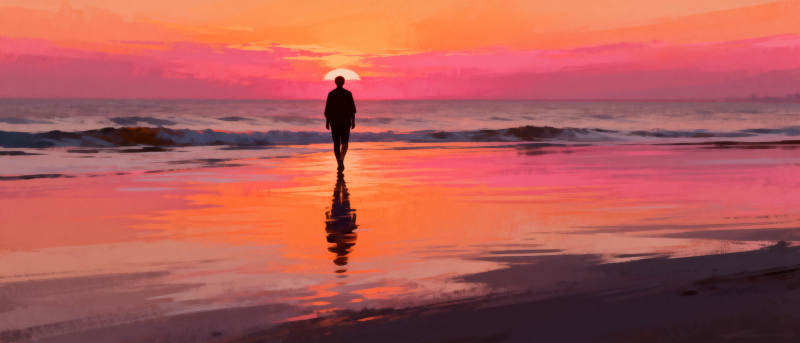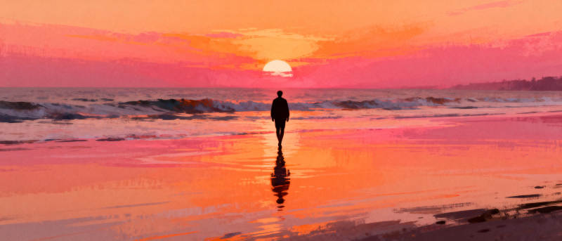 夕阳下的孤独身影