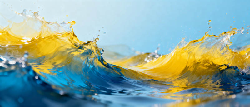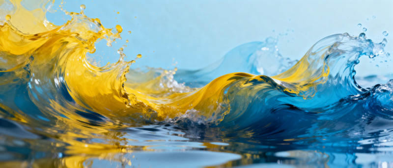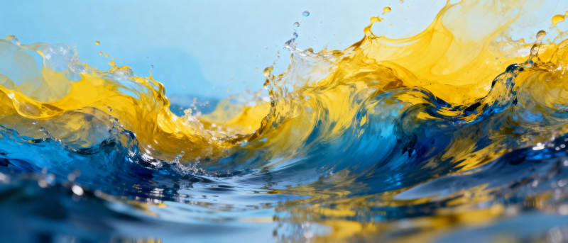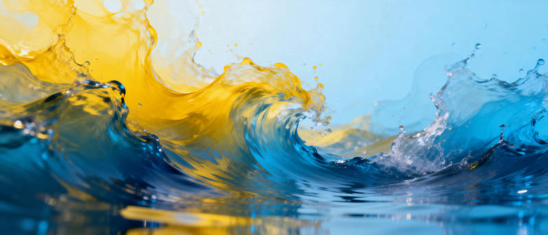 黄蓝水浪飞溅