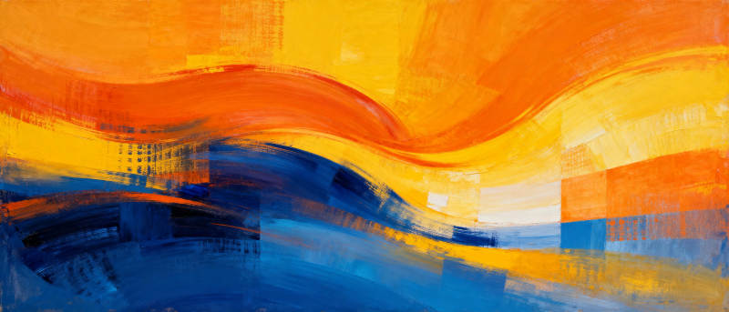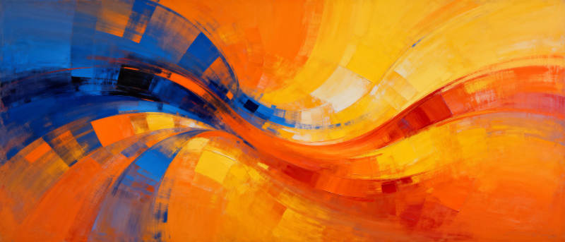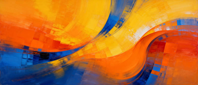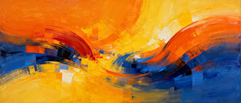 橙蓝交织的抽象画