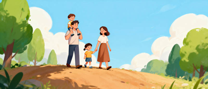 温馨家庭郊游图