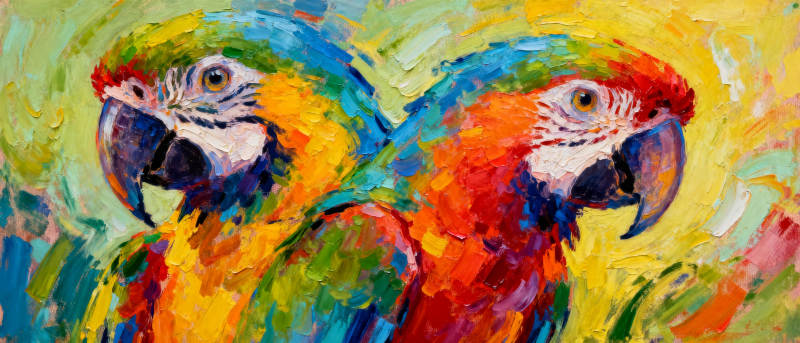 彩羽鹦鹉双影