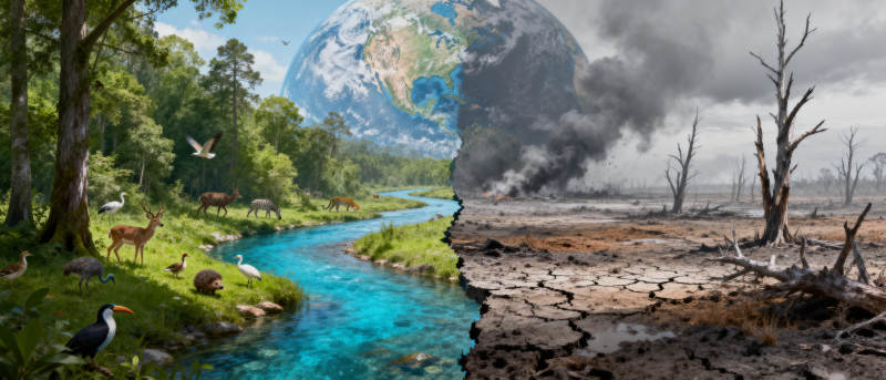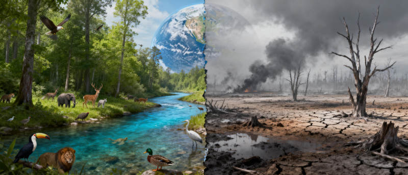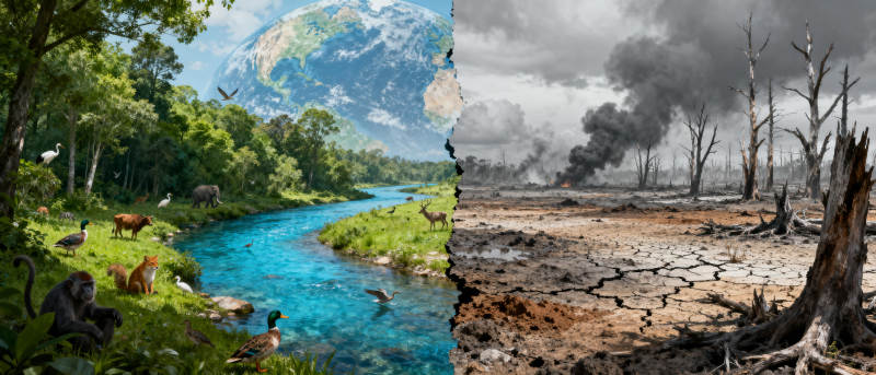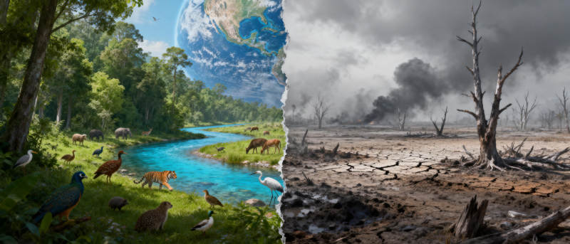 生态对比 生机与荒芜