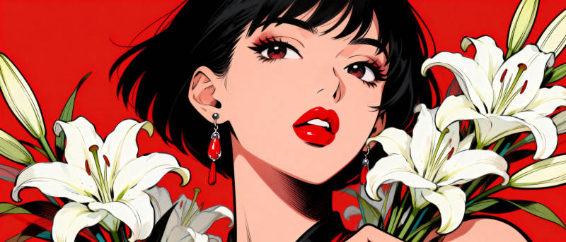 红唇女子与白花