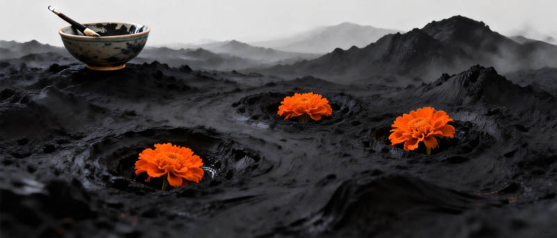 黑土上的橙花