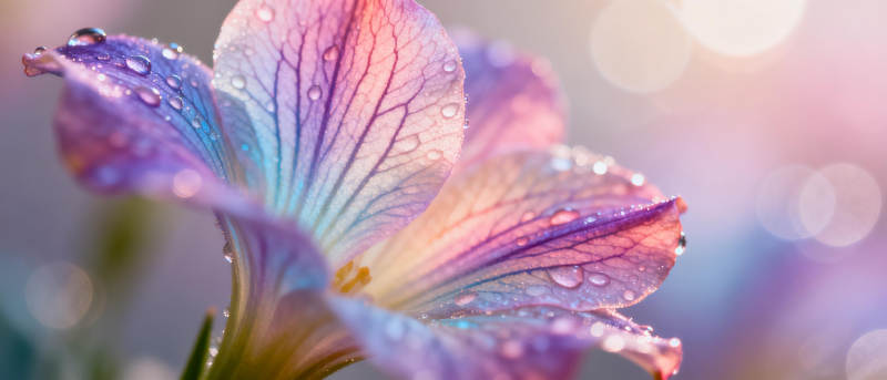 紫鸢尾花露珠特写