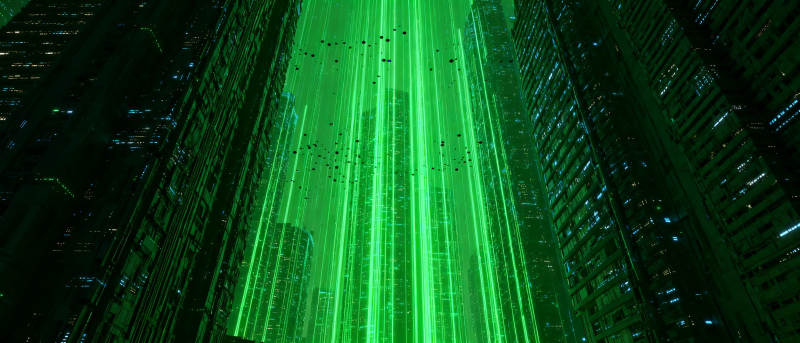 绿色光束城市夜景