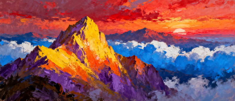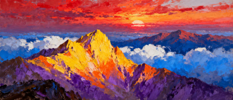 日出雪山壮丽图