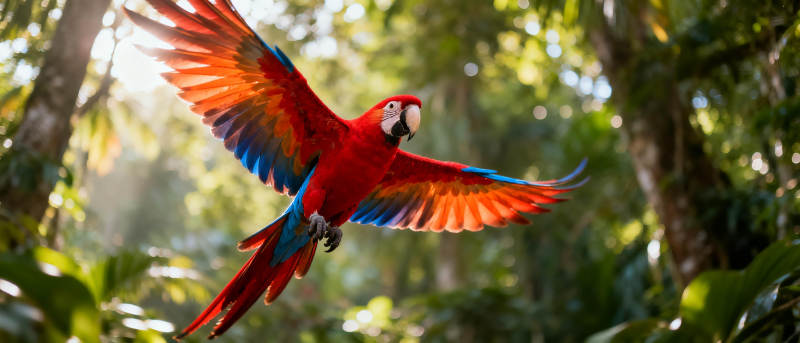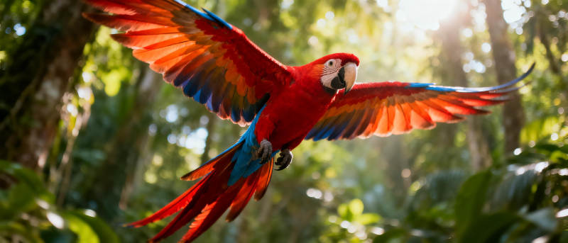 红鹦鹉展翅飞翔